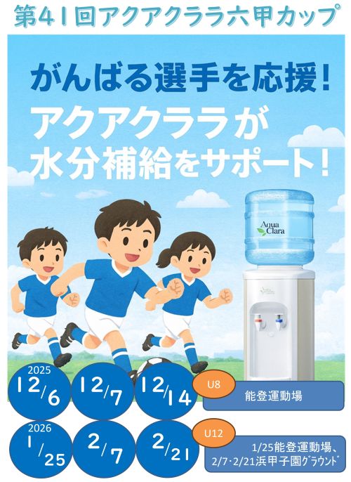 この度、アクアクララ六甲(株式会社MCエバテック)は2025/12/6~12/7、12/14および2026/1/25、2/7、2/21に開催される『第41回アクアクララ六甲カップ』に特別協賛することになりましたことをお知らせいたします。